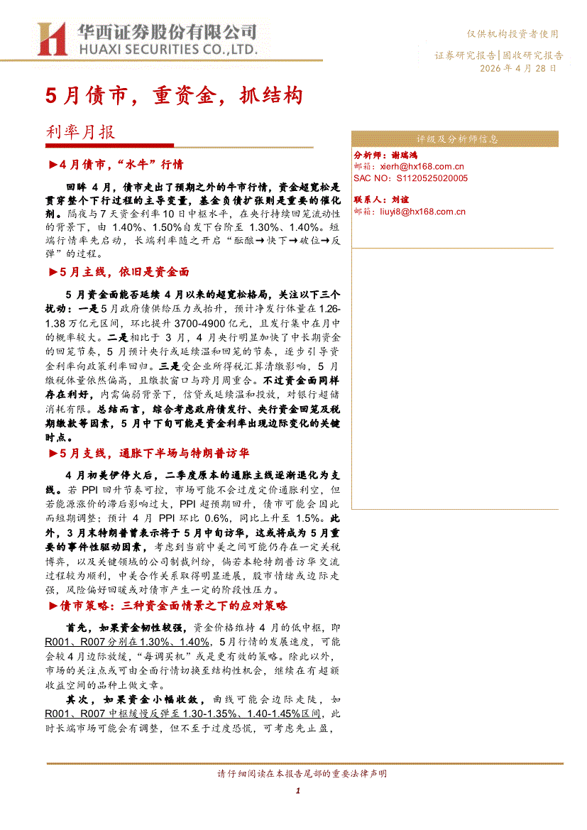 华西证券-利率月报:5月债市,重资金,抓结构-260428