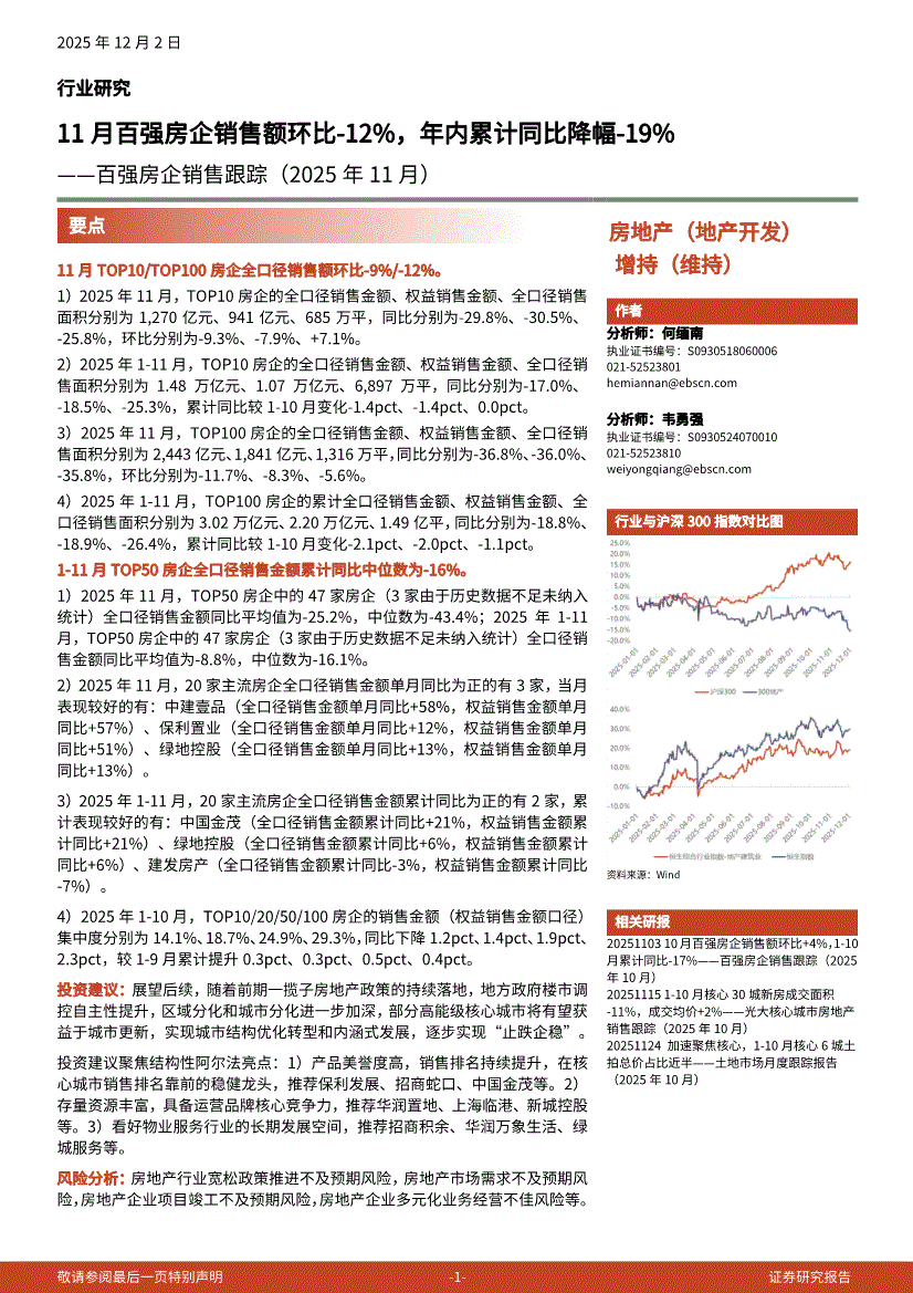房地产(地产开发)行业:光大证券-房地产(地产开发)行业百强房企销售跟踪(2025年11月):11月百强房企销售额环比下降12%,年内累计同比降幅减少19%-251202
