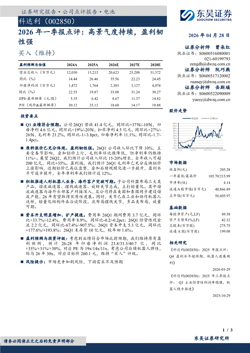 科达利:东吴证券-科达利-002850-2026年一季报点评:高景气度持续,盈利韧性强-260428