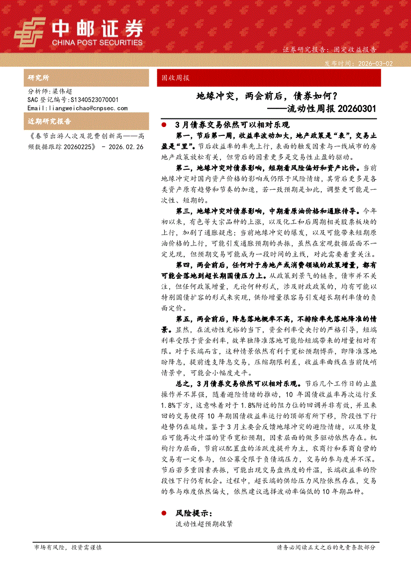 中邮证券-流动性周报:地缘冲突,两会前后,债券如何?-260302