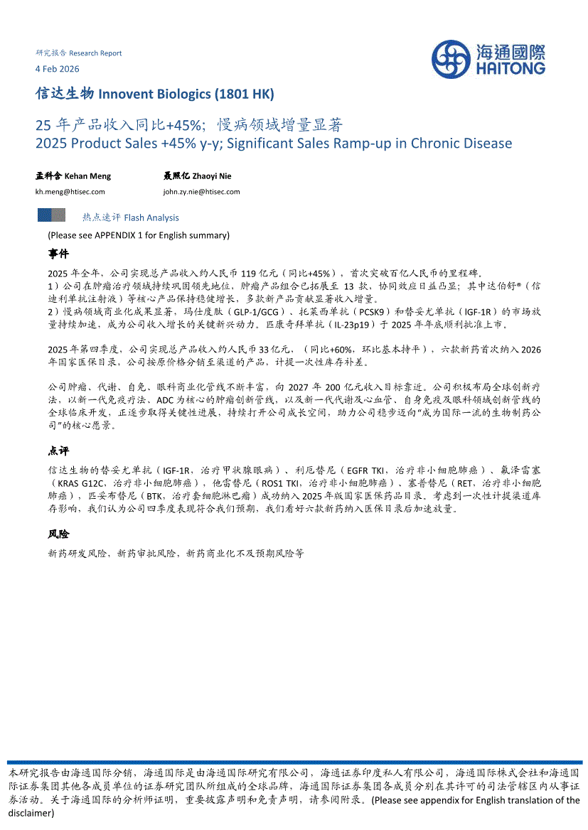 信达生物:海通国际-信达生物-1801.HK-25年产品收入同比+45%;慢病领域增量显著-260204