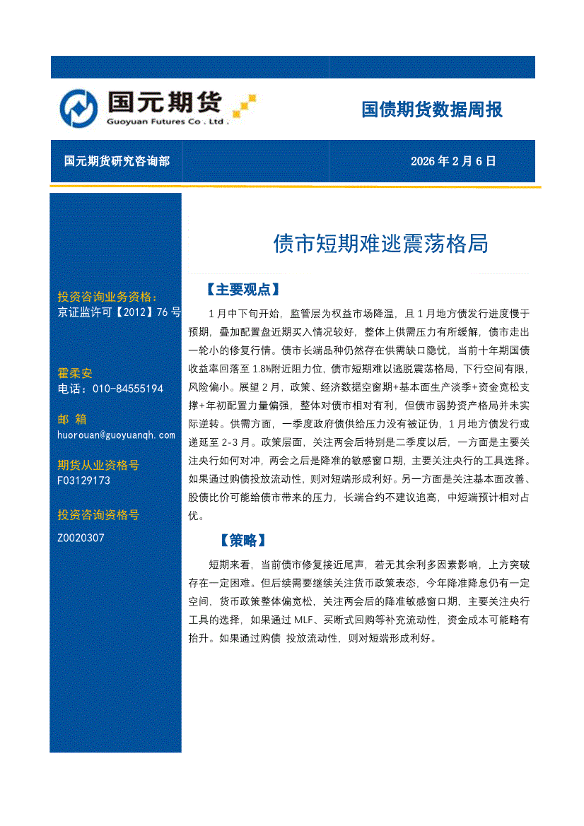 国元期货-国债期货数据周报:债市短期难逃震荡格局-260206