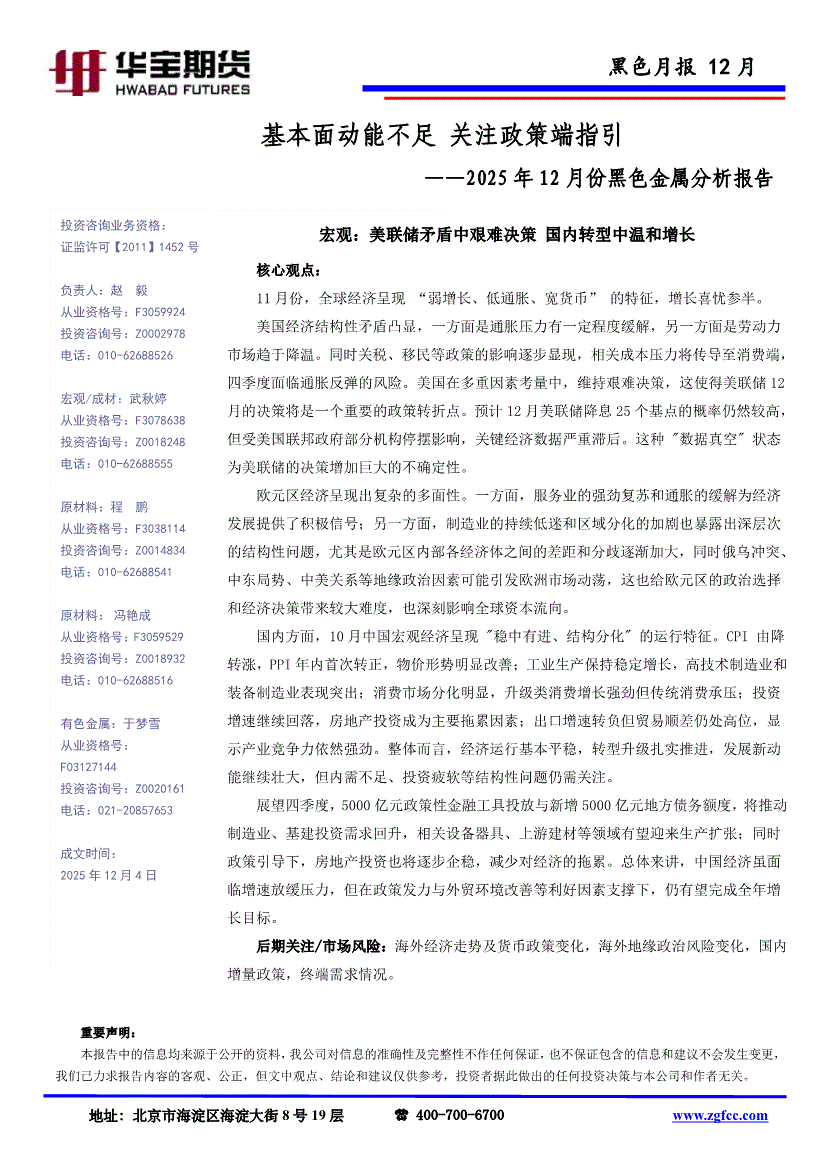 华宝期货-2025年12月份黑色金属分析报告:基本面动能不足,关注政策端指引-251204