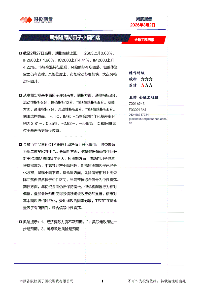国投期货-金融工程周报:期指短周期因子小幅回落-260302