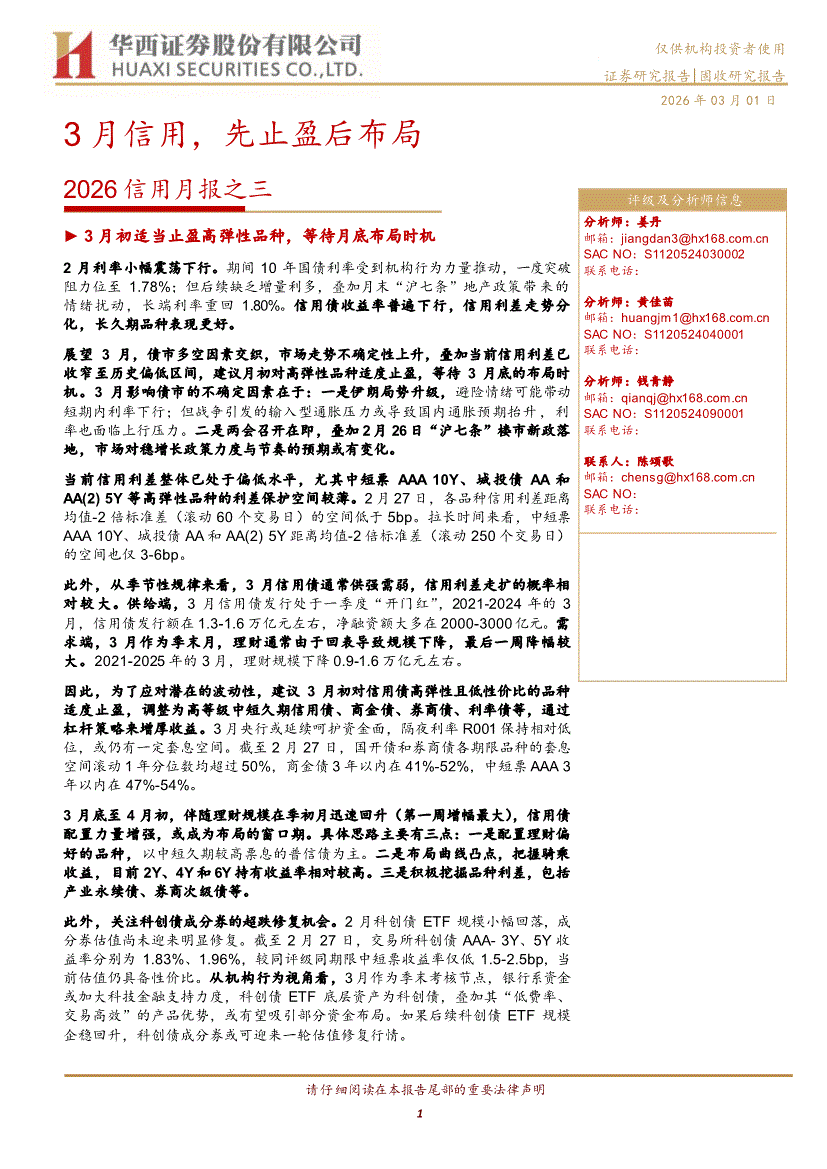 华西证券-2026信用月报之三:3月信用,先止盈后布局-260301