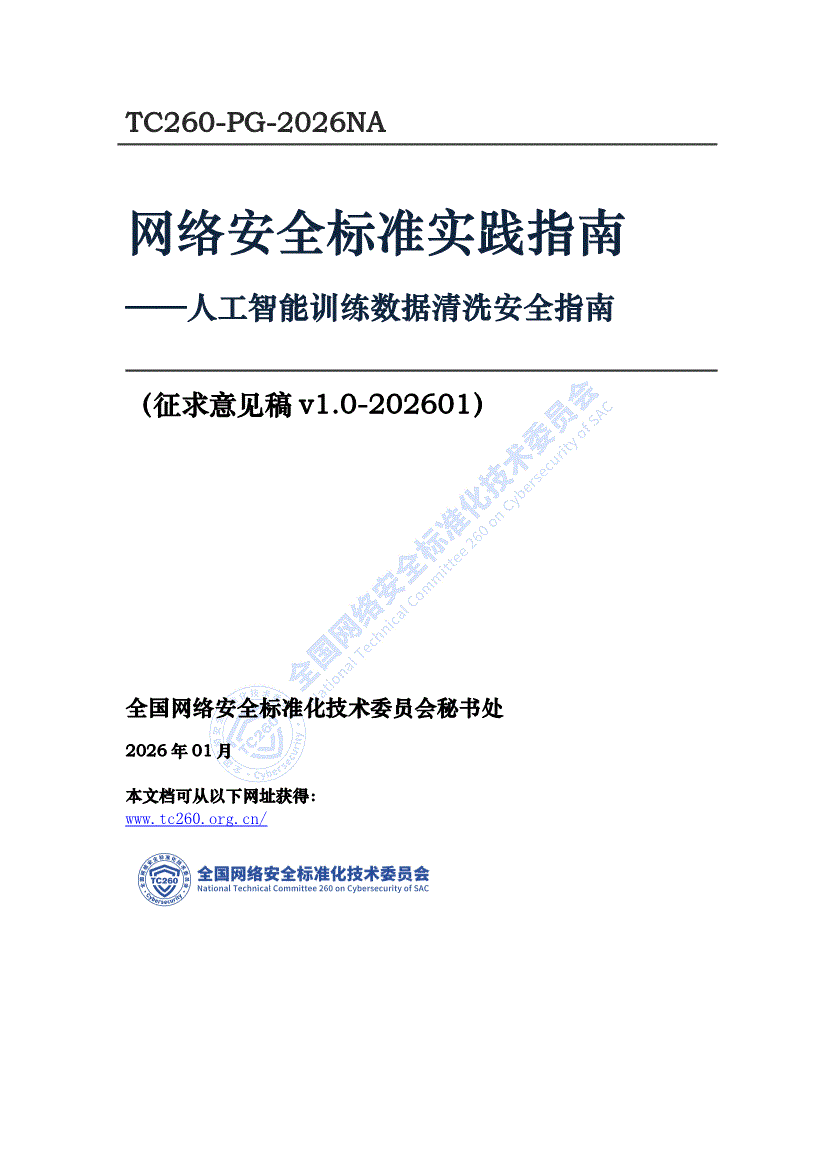 人工智能行业:全国网络安全标准化技术委员会秘书处-人工智能行业网络安全标准实践指南:人工智能训练数据清洗安全指南(征求意见稿)-260122