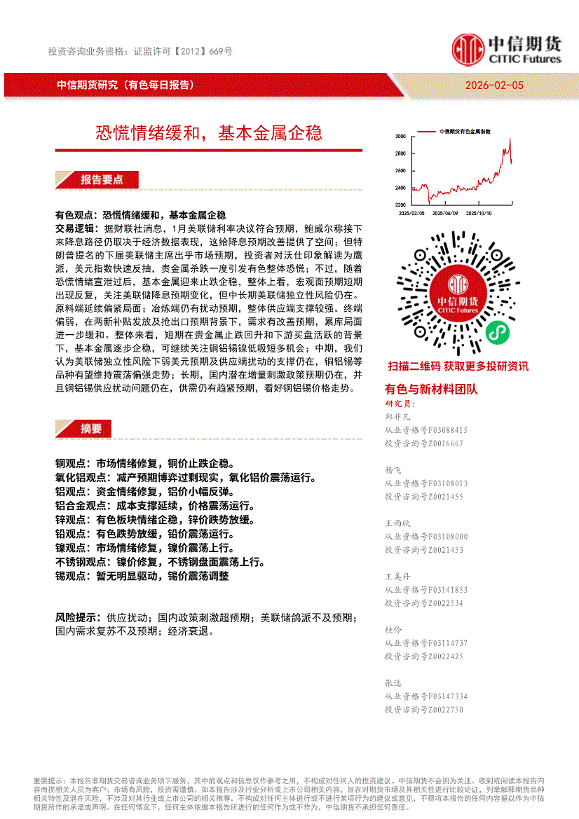 中信期货-有色每日报告:恐慌情绪缓和,基本金属企稳-260205