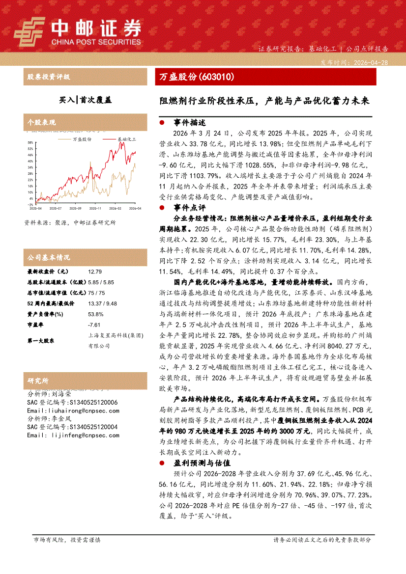 万盛股份:中邮证券-万盛股份-603010-阻燃剂行业阶段性承压,产能与产品优化蓄力未来-260428