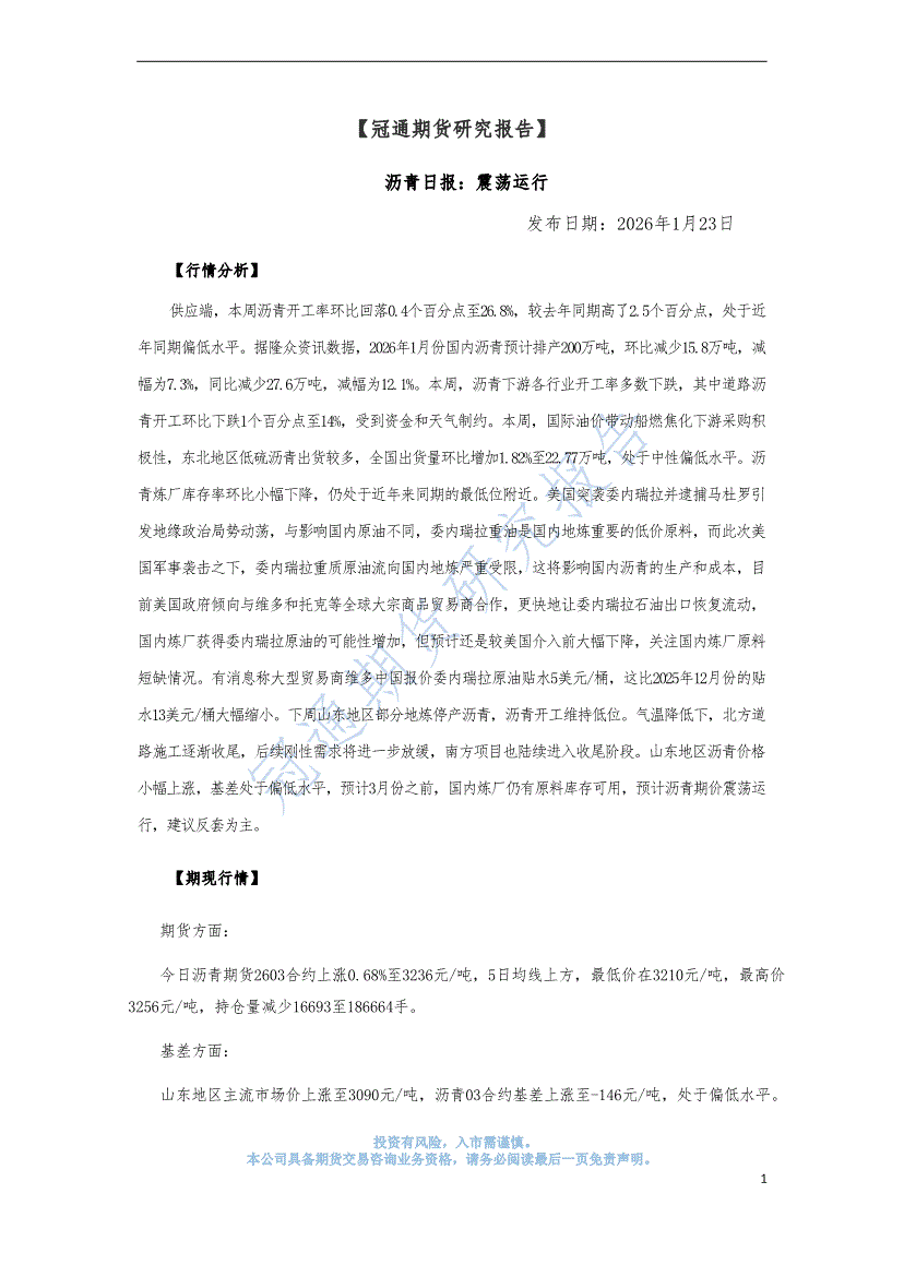 冠通期货-沥青日报:震荡运行-260123