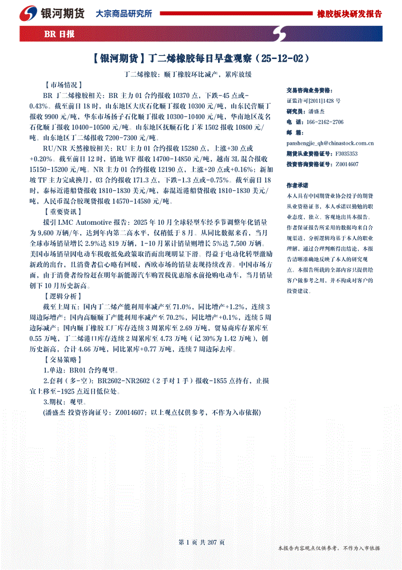 银河期货-丁二烯橡胶每日早盘观察-251202