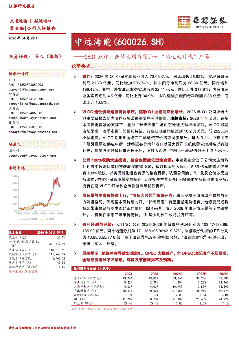 中远海能:华源证券-中远海能-600026-26Q1点评:业绩大增有望拉开“油运大时代”序幕-260429