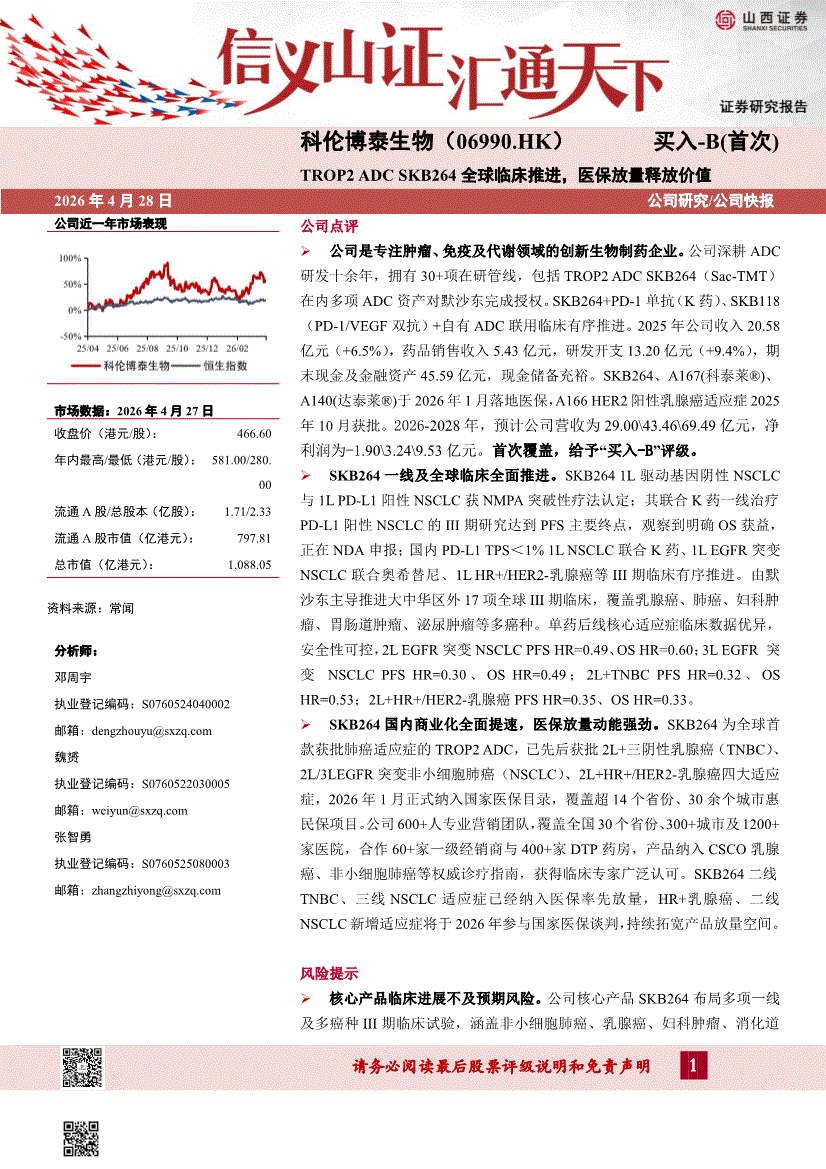 科伦博泰生物:山西证券-科伦博泰生物-6990.HK-TROP2 ADC SKB264全球临床推进,医保放量释放价值-260428