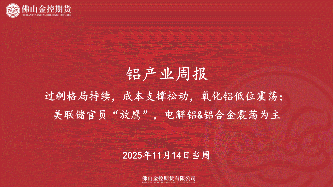 佛山金控期货-铝产业周报:过剩格局持续,成本支撑松动,氧化铝低位震荡;美联储官员“放鹰”,电解铝&铝合金震荡为主-251114