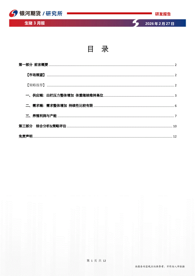 银河期货-生猪3月报:出栏继续增加,价格整体下行-260227