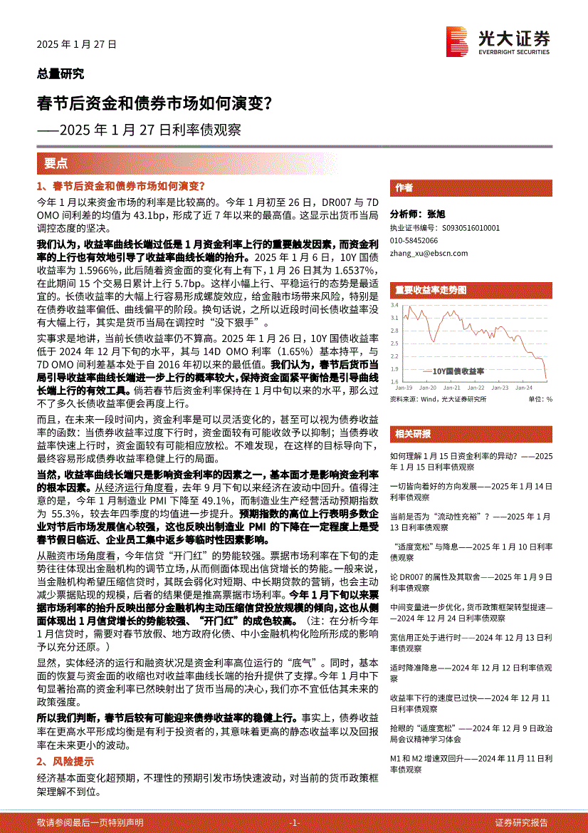 光大证券-2025年1月27日利率债观察:春节后资金和债券市场如何演变? -250127