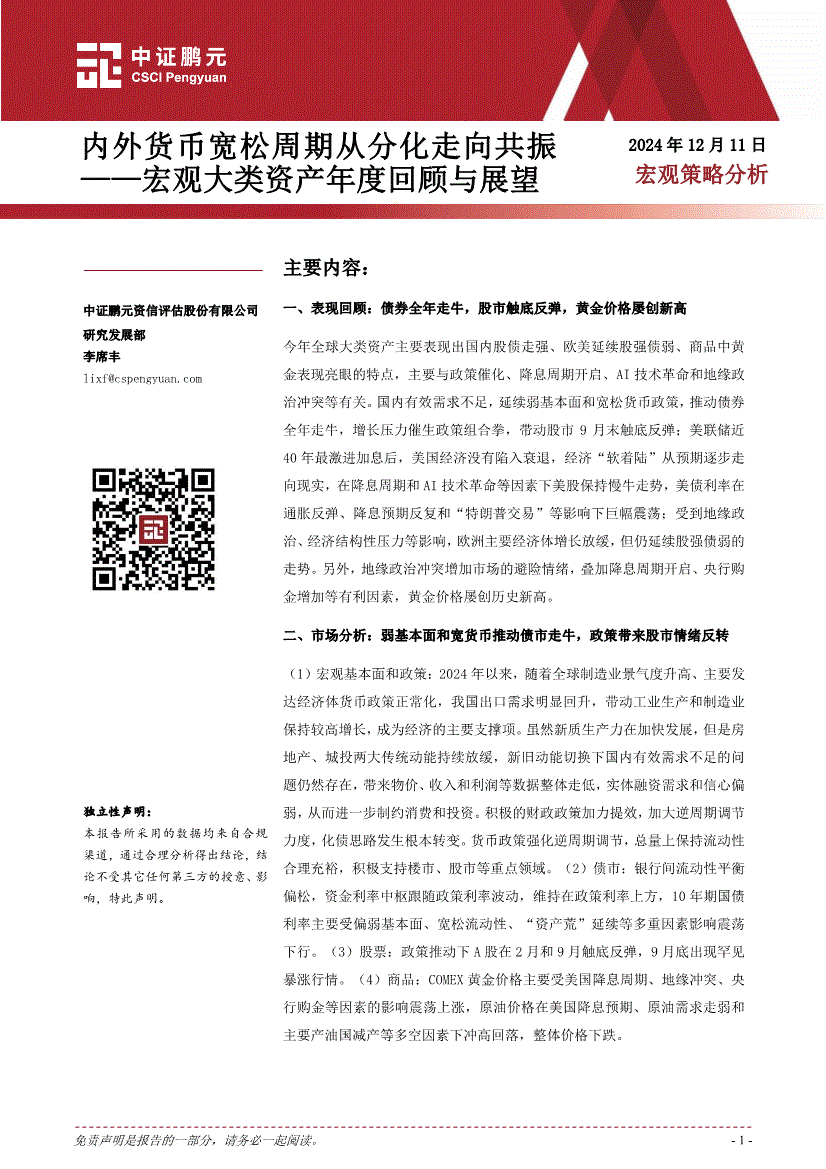 中证鹏元资信评估股份有限公司-宏观大类资产年度回顾与展望:内外货币宽松周期从分化走向共振-251211