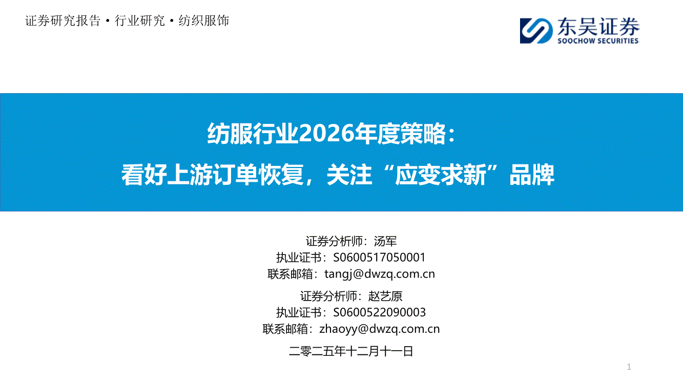 纺服行业:东吴证券-纺服行业2026年度策略:看好上游订单恢复,关注“应变求新”品牌-251211