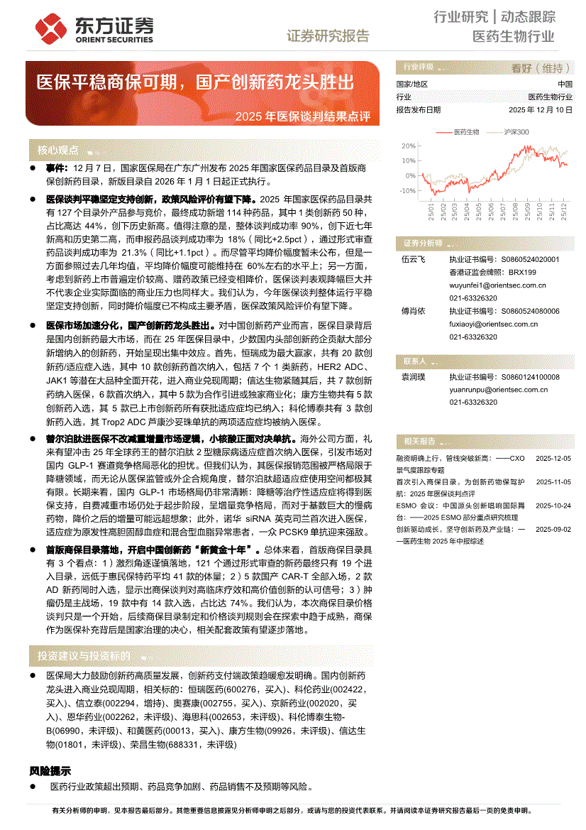医药生物行业:东方证券-医药生物行业2025年医保谈判结果点评:医保平稳商保可期,国产创新药龙头胜出-251210