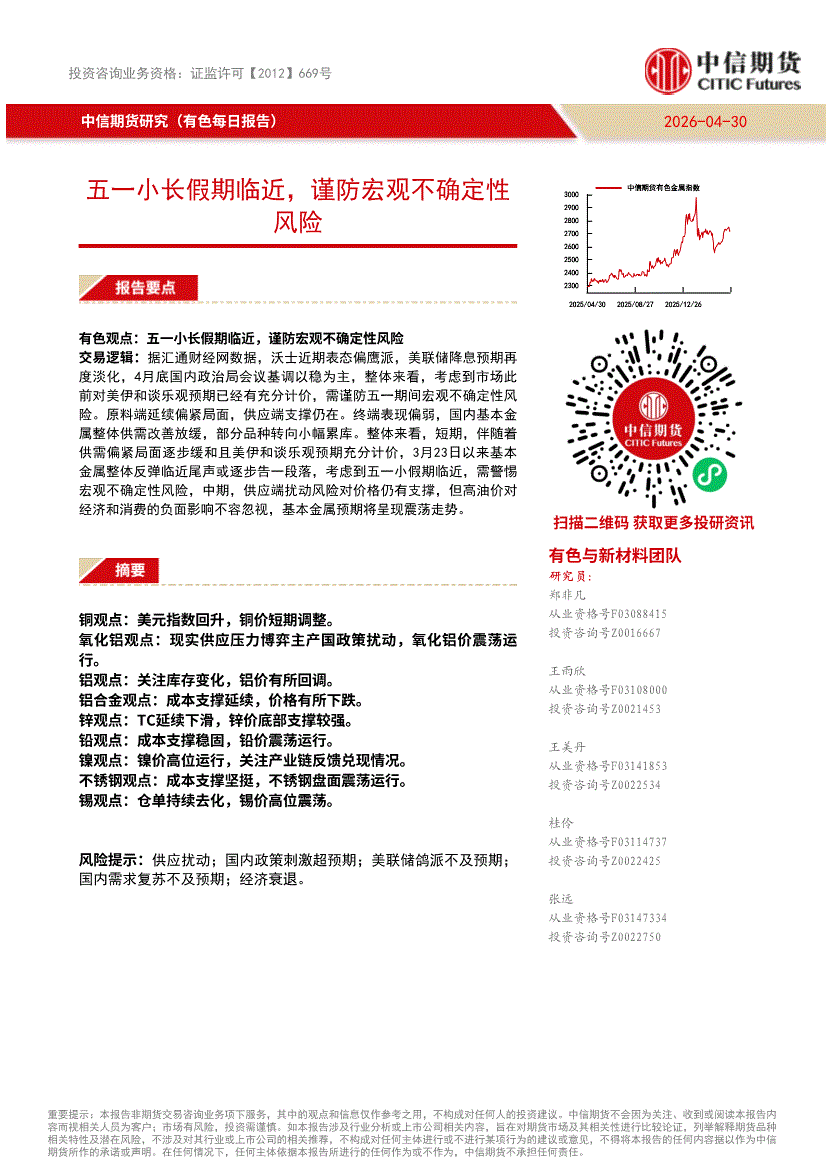 中信期货-有色每日报告:五一小长假期临近,谨防宏观不确定性风险-260430