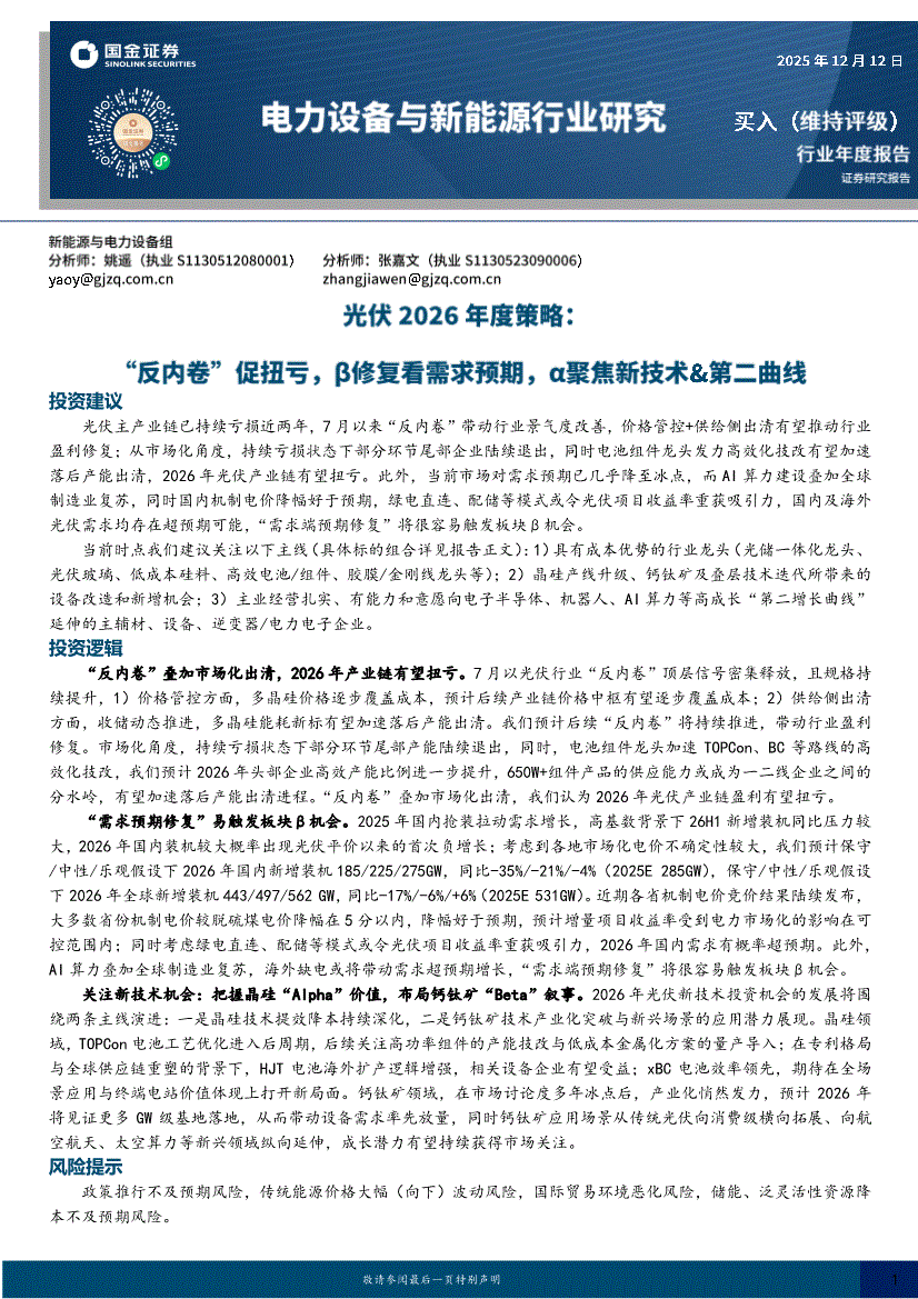 电力设备与新能源行业:国金证券-电力设备与新能源行业研究:光伏2026年度策略,“反内卷”促扭亏,β修复看需求预期,α聚焦新技术&第二曲线-251212