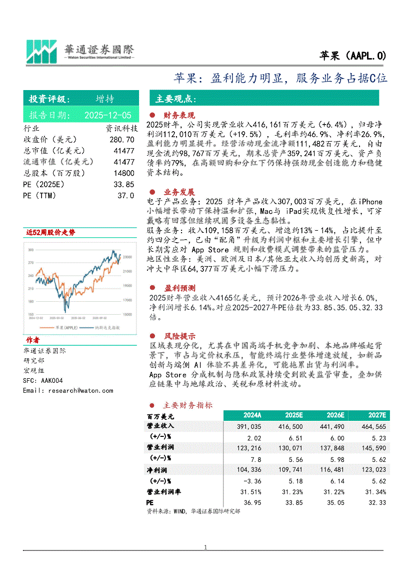 苹果:华通证券国际-苹果-AAPL.US-盈利能力明显,服务业务占据C位-251205