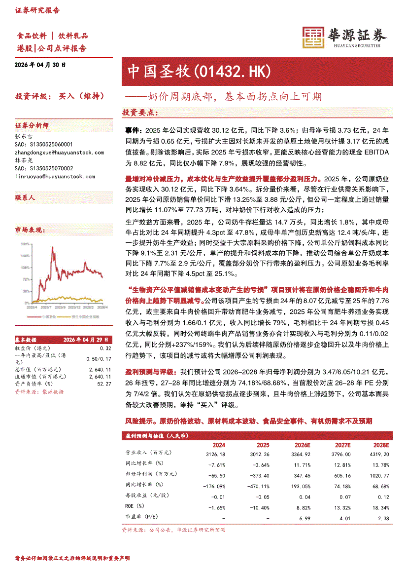 中国圣牧:华源证券-中国圣牧-1432.HK-奶价周期底部,基本面拐点向上可期-260430
