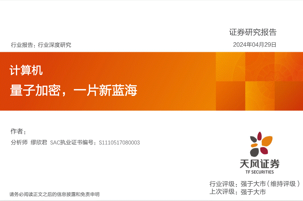 计算机行业:天风证券-计算机行业:量子加密,一片新蓝海-240429