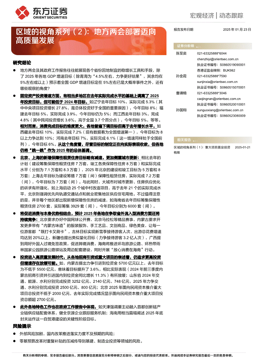 东方证券-区域的视角系列(2):地方两会部署迈向高质量发展-250127