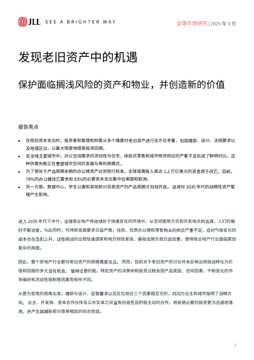 仲量联行-发现老旧资产中的机遇:保护面临搁浅风险的资产和物业,并创造新的价值-250318