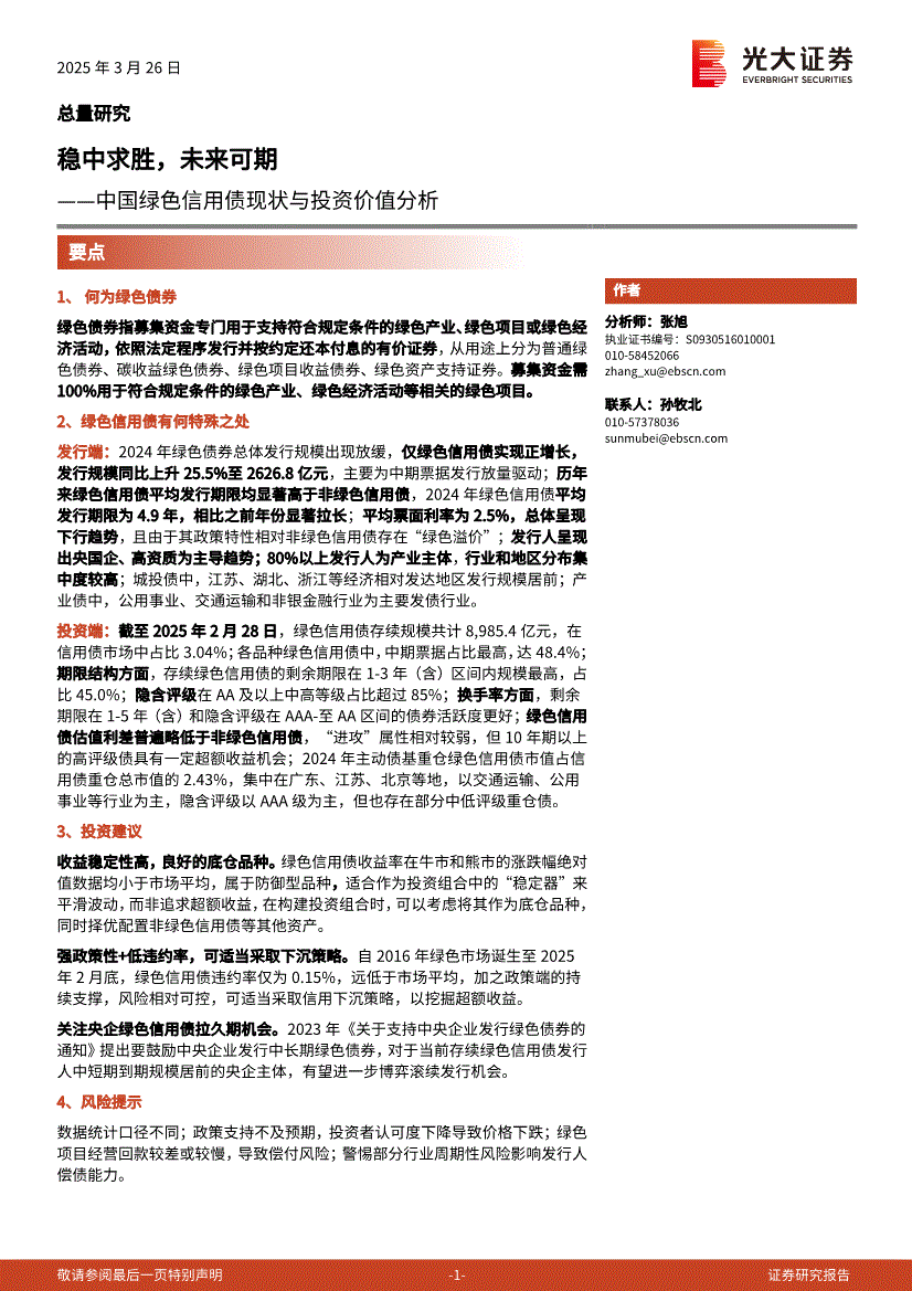 光大证券-中国绿色信用债现状与投资价值分析:稳中求胜,未来可期-250326