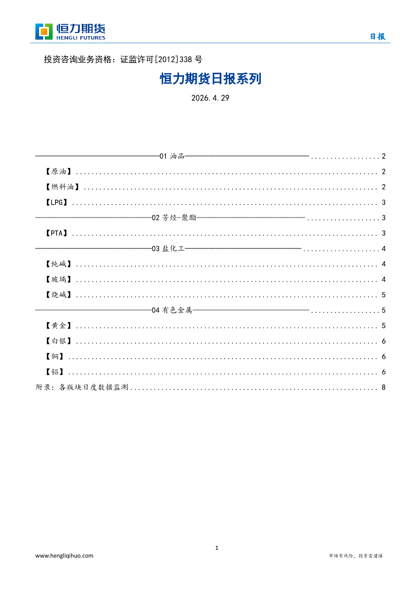 恒力期货-日报系列-260429