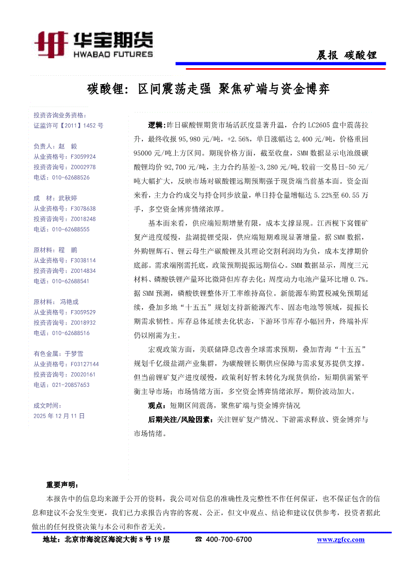 华宝期货-碳酸锂:区间震荡走强,聚焦矿端与资金博弈-251211