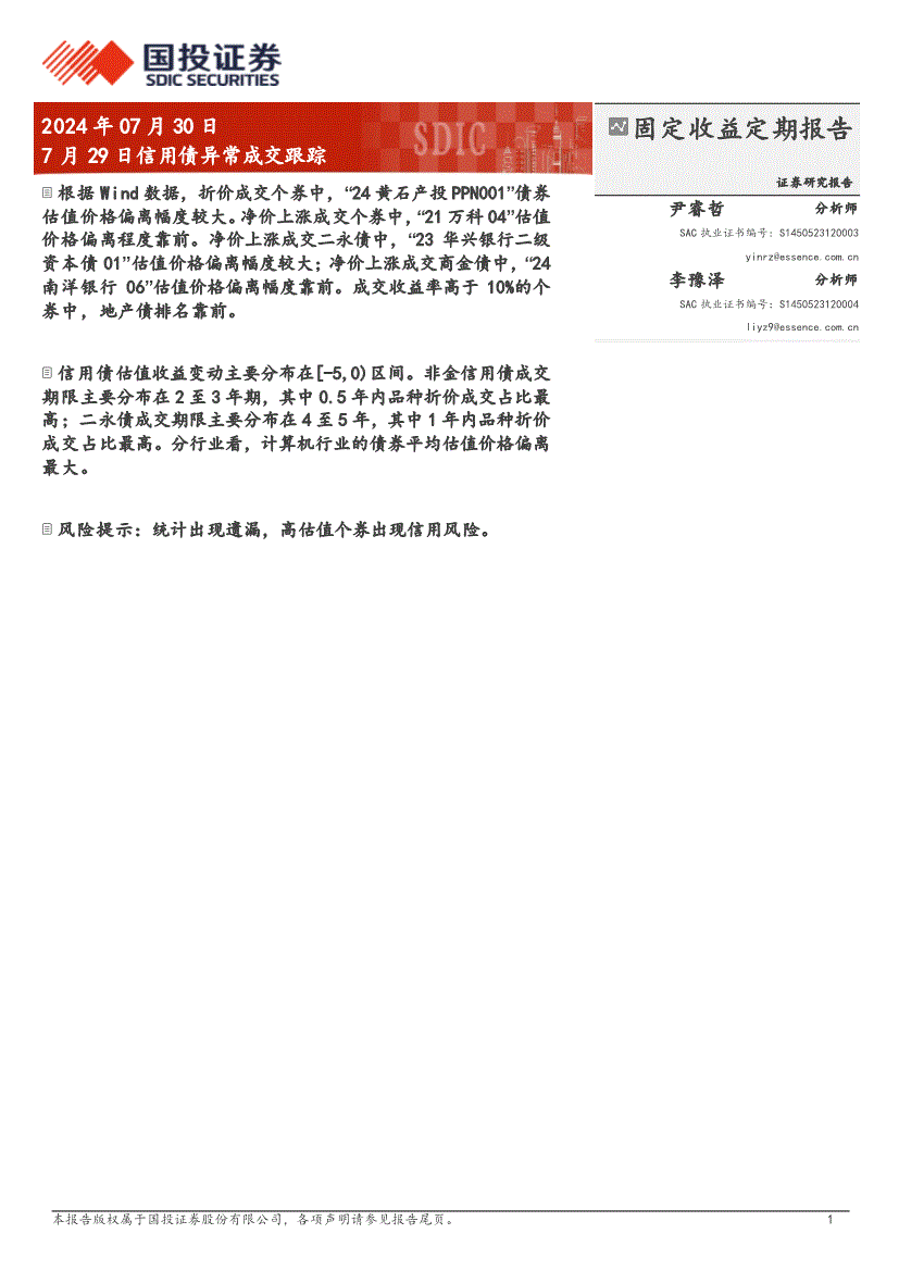 国投证券-7月29日信用债异常成交跟踪-240730